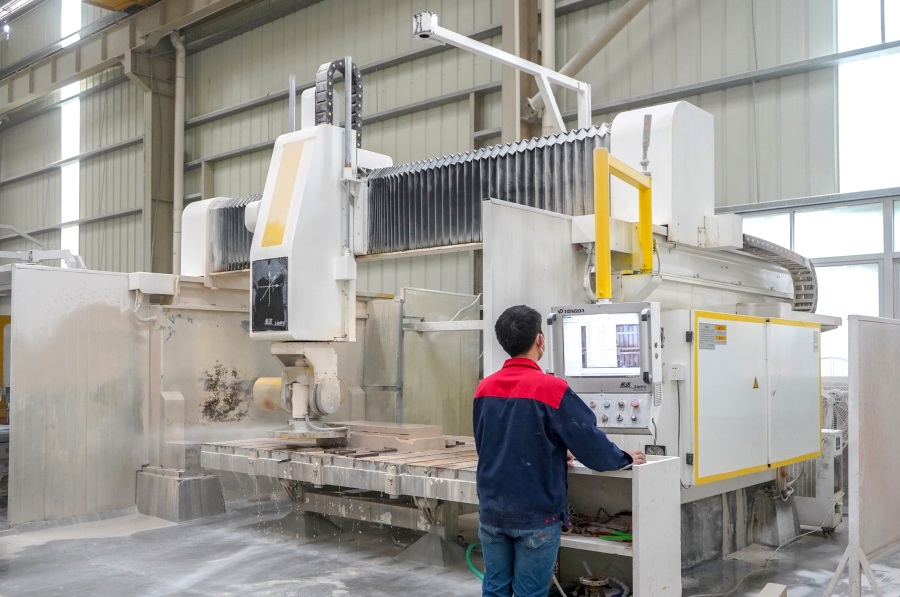 拥有国内先进的精深加工设备,大切、龙门锯、仿型机、桥切机、绳锯、花瓶机、花钵机、手扶磨光机、线条自动磨光机等