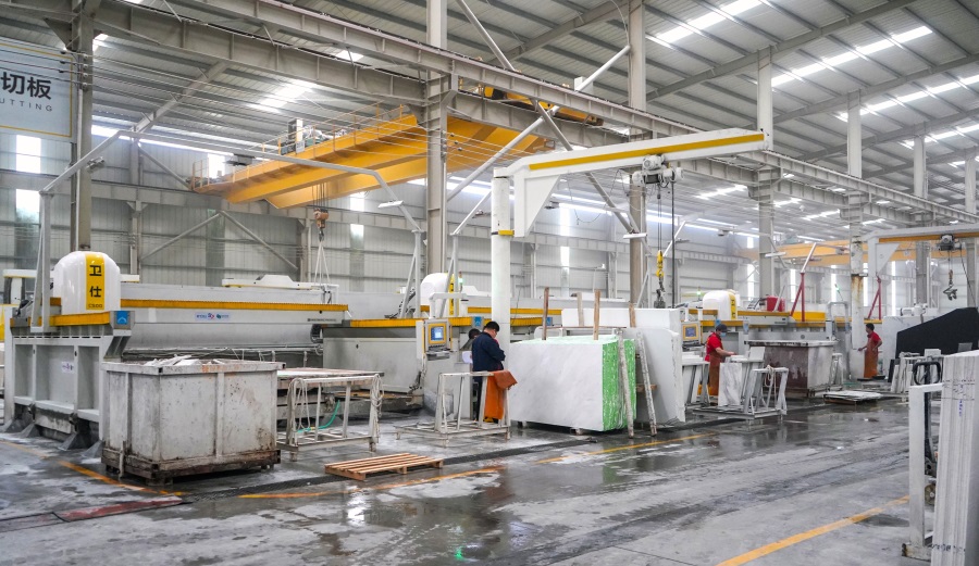 拥有国内先进的精深加工设备,大切、龙门锯、仿型机、桥切机、绳锯、花瓶机、花钵机、手扶磨光机、线条自动磨光机等